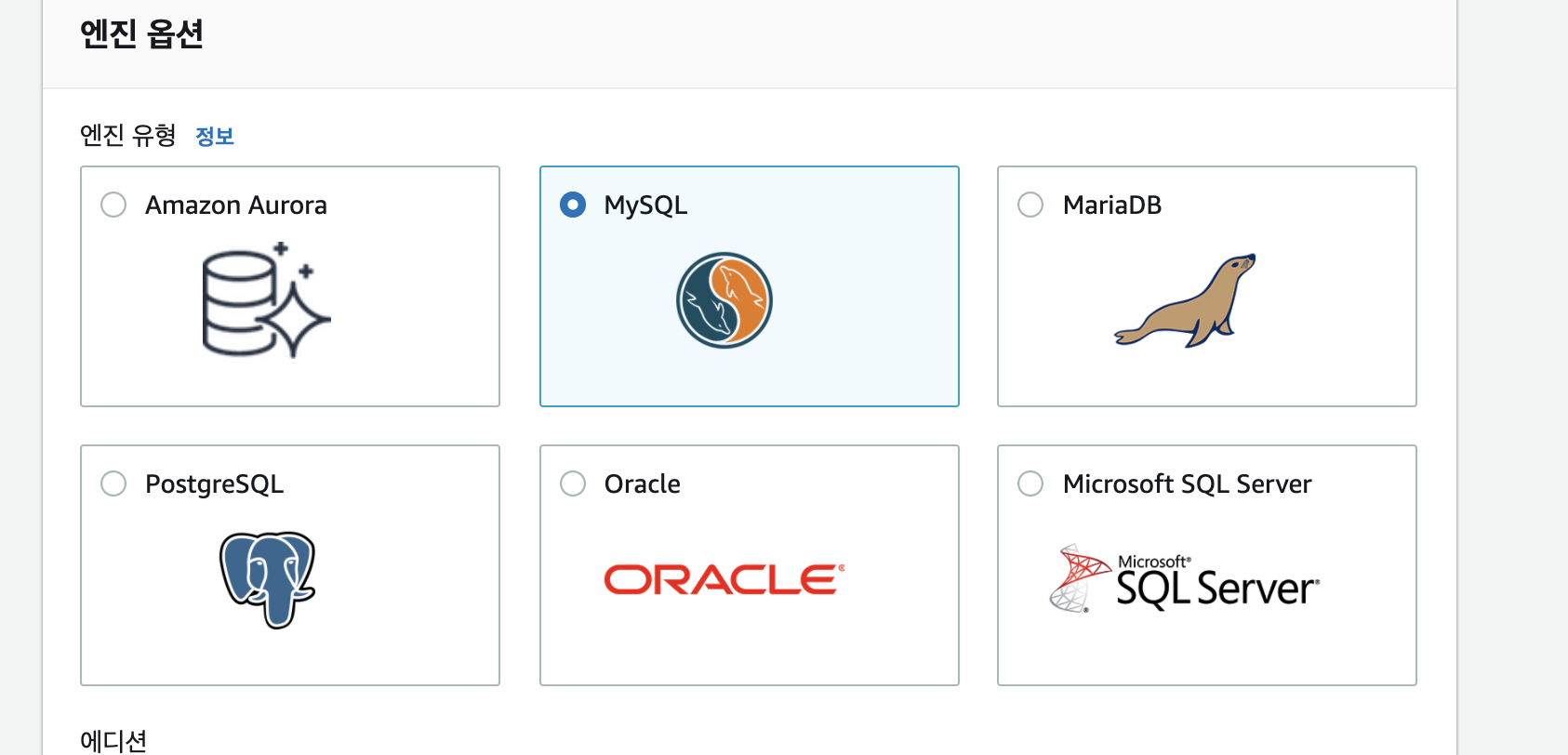 원하는 데이터 베이스 유형을 선택해준다.