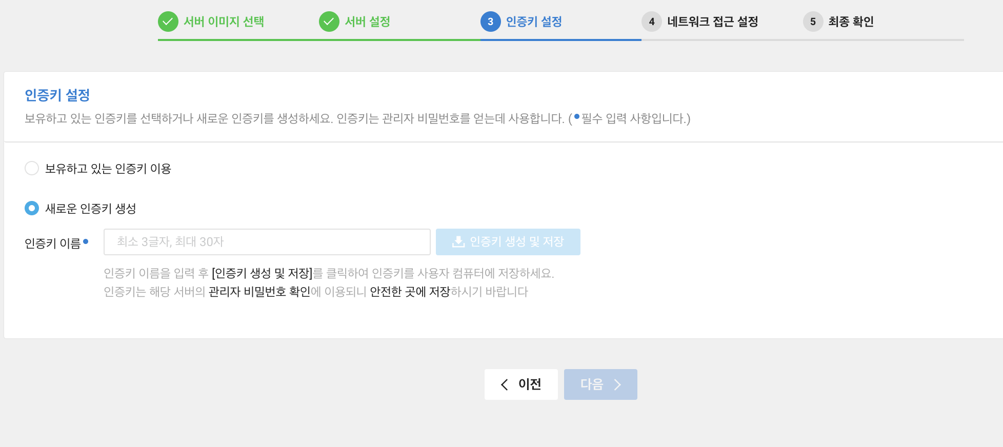 이 부분이 중요한데 보유하고 있는 인증키가 따로 없다면 새로운 인증키를 생성해야 한다.