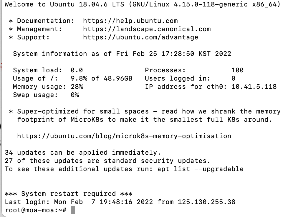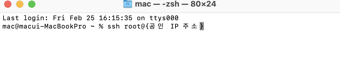 % ssh root@{공인 IP 주소}